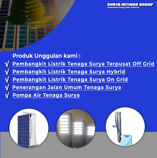 Jual Panel Surya Lombok Timur NTB. Perkenalkan kami dari PT. Surya Intindo Group men jual panel surya Lombok Timur NTB, contohnya seperti paket PLTS, PJU tenaga surya, pompa air tenaga surya, dan lain sebagainya. Dapatkan info harga produk dan sesuaikan kebutuhan Anda dari kami dengan harga terbaik. Dengan menggunakan panel surya, Anda dapat mengurangi ketergantungan pada pasokan listrik konvensional dan memiliki sumber listrik mandiri.